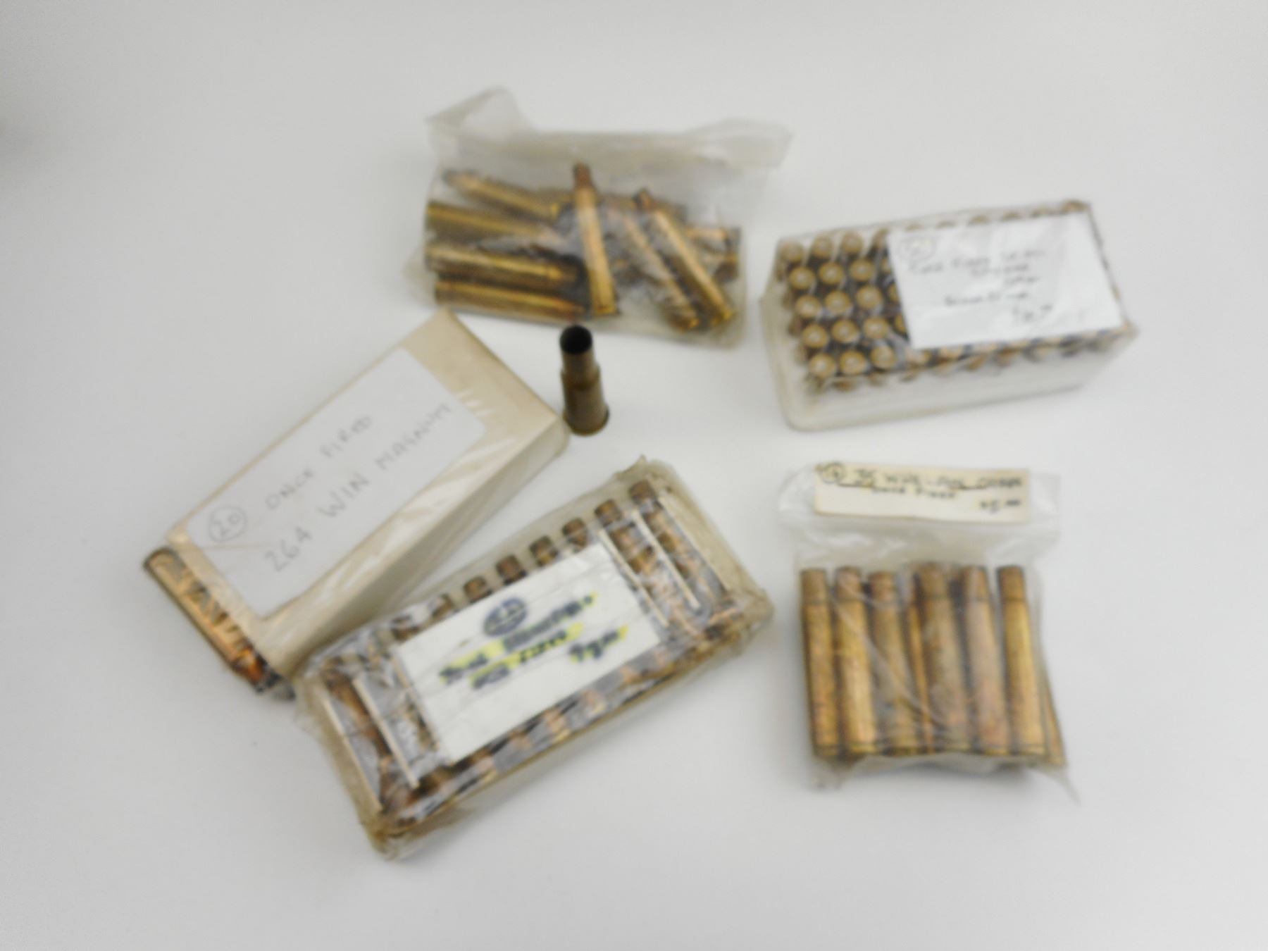 ASSORTED BRASS , 1.2KG ASSORTED BRASS, INCLUDING 35 WHELAN 30 M1 CARBINE, 30-06 SPRINGFIELD, 264 WIN MAG, 264 WIN MAG, 45 M.H.