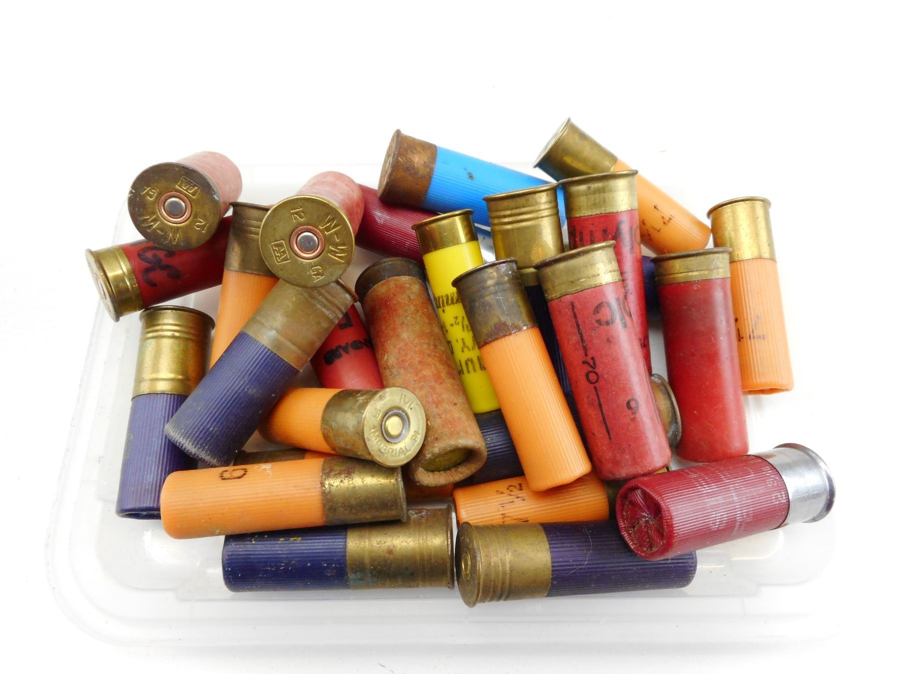 ASSORTED SHOTGUN SHELLS , 27 SHOTGUN SHELLS, ASSORTED, 16 GA, 20 GA, 12 GA, 10 GA.
