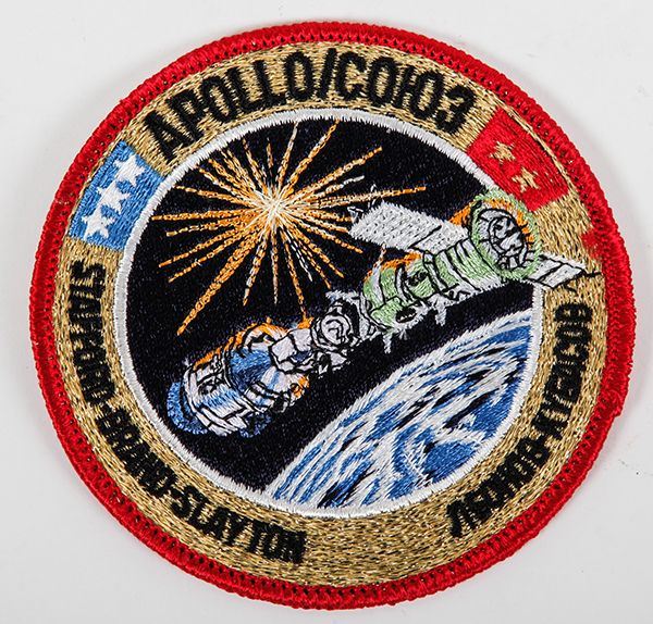 Astp, 1975, Flown Crew Patch (4") This richly embroidered patch is highly detailed. Each patch includes a printed COA that reads: "This is to certify that this Apollo Soyuz crew patch belonged to my husband, Deke Slayton, and was flown on that Mission in 1975. It was locked in his safe deposit box along with other space memorabilia. It is genuine in all respects / Signed Bobbie Slayton". Rare. Ex. the Astronaut Donald K. "Deke" Estate Collection.