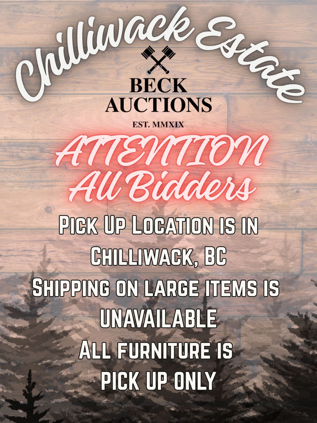 Shipping Charges will be calculated once the Auction has closed and will be added to the invoice once pick-ups are completed. We ship through Canada Post, which means we only ship within the parameters of their dimensions & weight. Anything won in our auctions above and beyond that will be forfeited.
