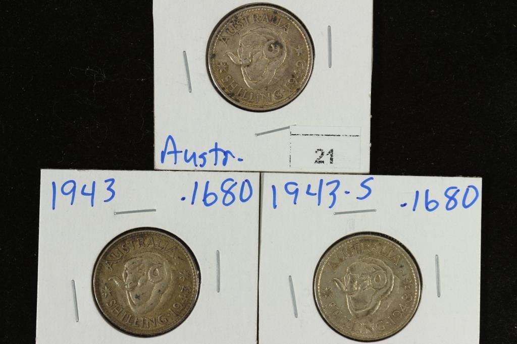AUSTRALIA 1942-S,43 & 43-S SILVER SHILLINGS