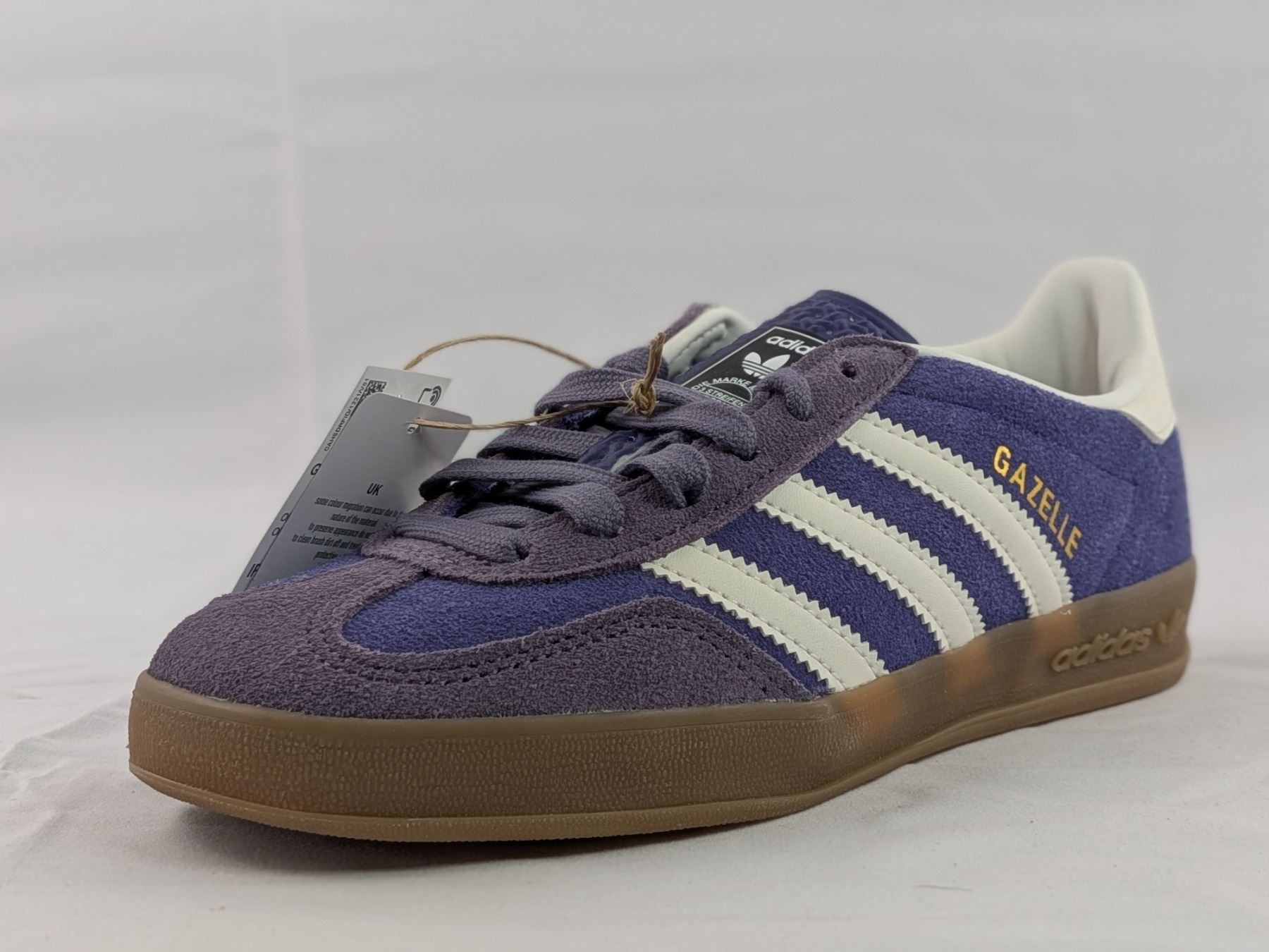New Pair of Adidas Gazelle indoor (CPURPL/FTWWHT) Size- Men's 4.5