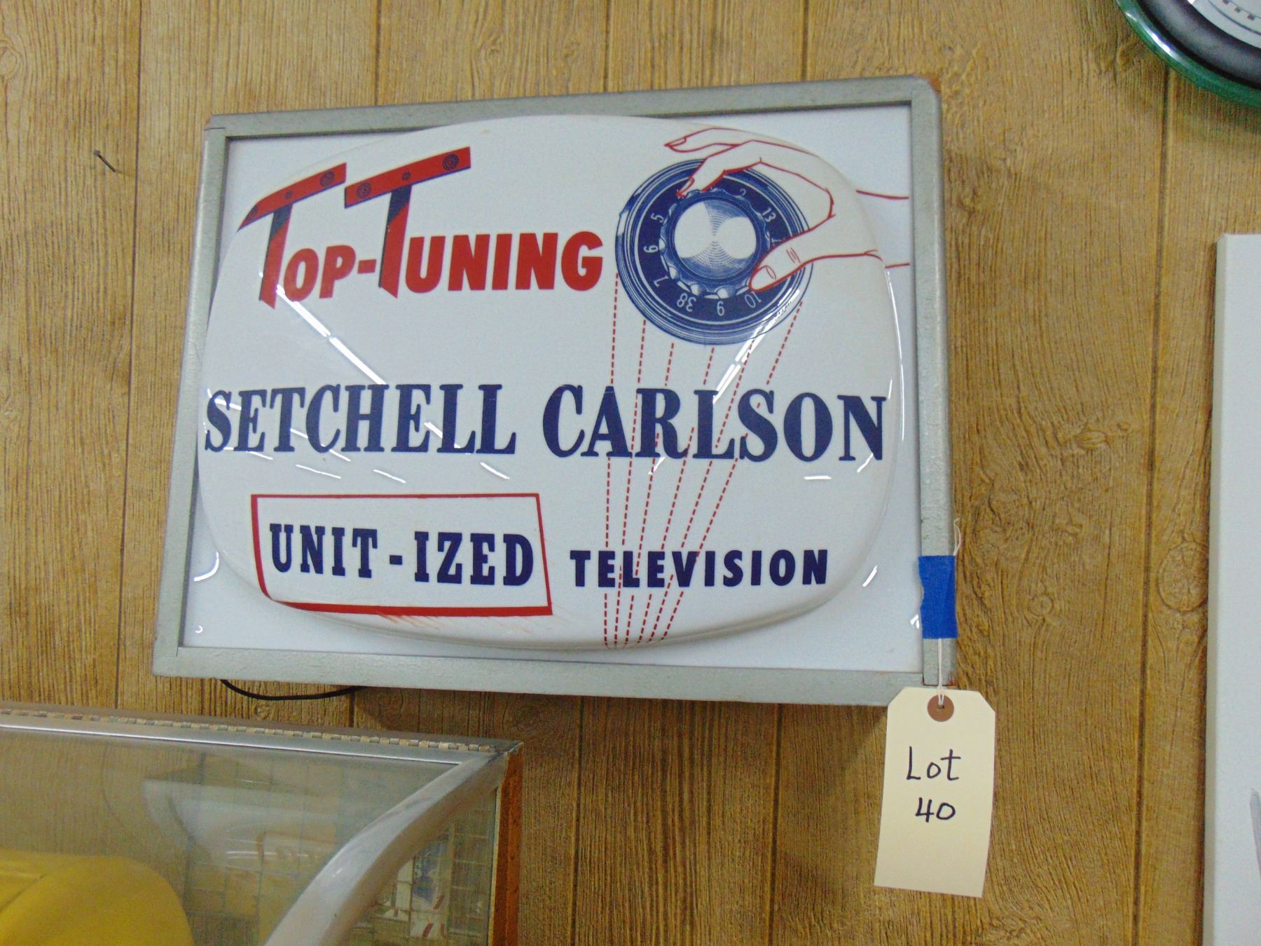 Setchell-Carlson lighted bakelite and wood television sign; works; no cracks; very nice
