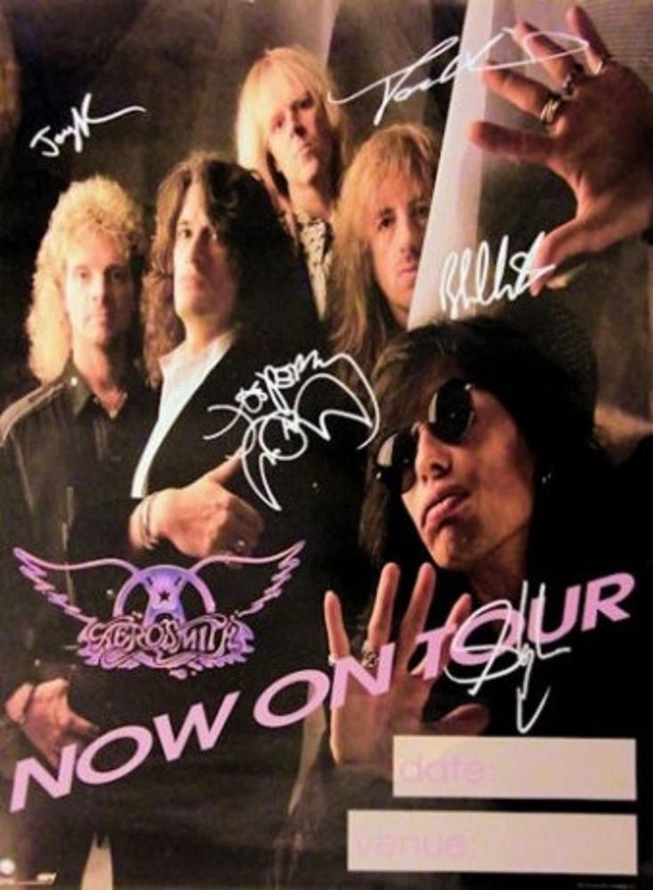 18 x 24 Aerosmith Tour Poster autographed by Steven Tyler, Joe Perry, Tom Hamilton, Joey Kramer and Brad Whitford.