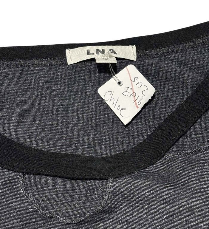 Original gray/black shirt worn by "Daisy 'Skye' Johnson", played by Chloe Bennet on the Joss Whedon television series 'Agents of S.H.I.E.L.D.' (2013 2020), based on the Marvel Comics organization S.H.I.E.L.D. (Strategic Homeland Intervention, Enforcement, and Logistics Division), a peacekeeping and spy agency in a world of superheroes. It is set in the Marvel Cinematic Universe (MCU) and acknowledges the continuity of the franchise's films and other television series.