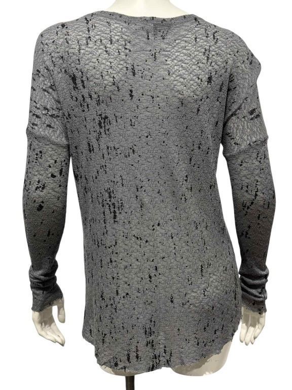 Original gray/black spot shirt worn by "Daisy 'Skye' Johnson", played by Chloe Bennet on the Joss Whedon television series 'Agents of S.H.I.E.L.D.' (2013 2020), based on the Marvel Comics organization S.H.I.E.L.D. (Strategic Homeland Intervention, Enforcement, and Logistics Division), a peacekeeping and spy agency in a world of superheroes. It is set in the Marvel Cinematic Universe (MCU) and acknowledges the continuity of the franchise's films and other television series.