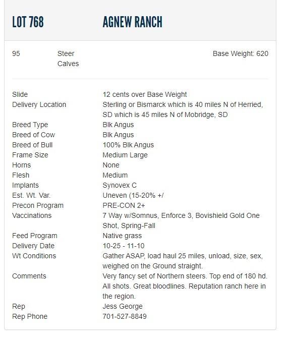 Agnew Ranch - 95 Steers; Base Weight: 620