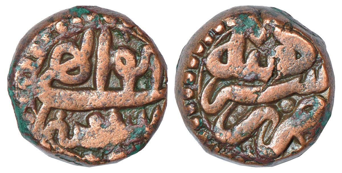 Akbar (1556-1605 AD), copper dam, Sahrind mint, Sanah Ilahi 41, KM 32.23, 20.59g.