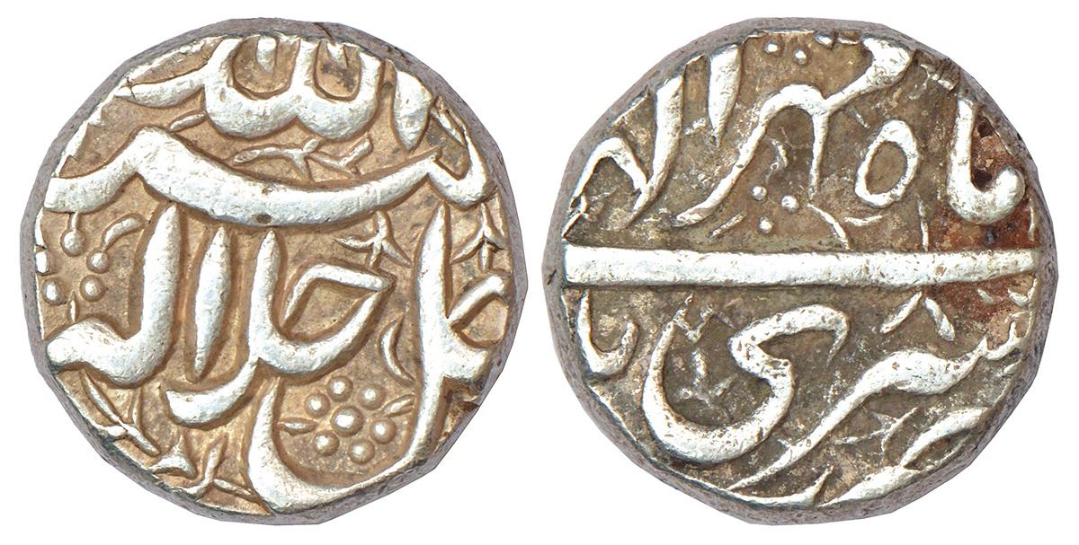 Akbar (1556-1605 AD), silver rupee, Srinagar mint, Mihr 48, KM 93.15, 11.38g.