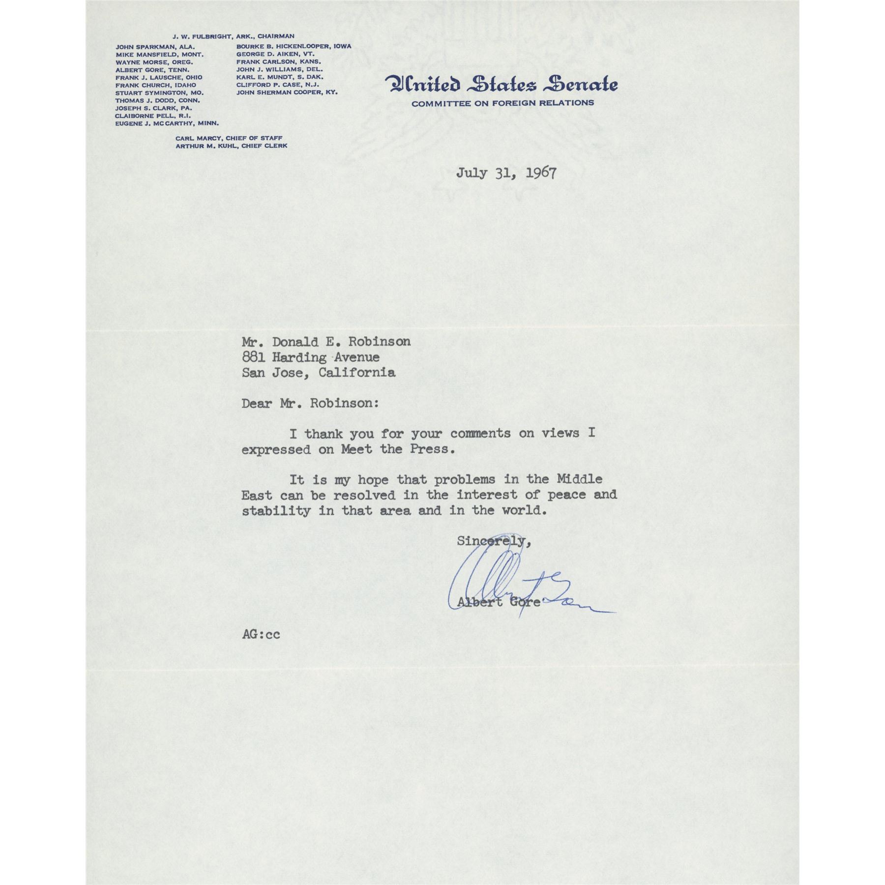 Al Gore signed letter. Custom framed, matted 11x14 inches.