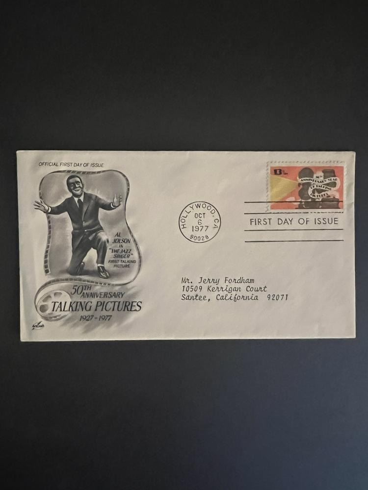 Al Jolson Talking Pictures First Day Cover. 3x6 inches