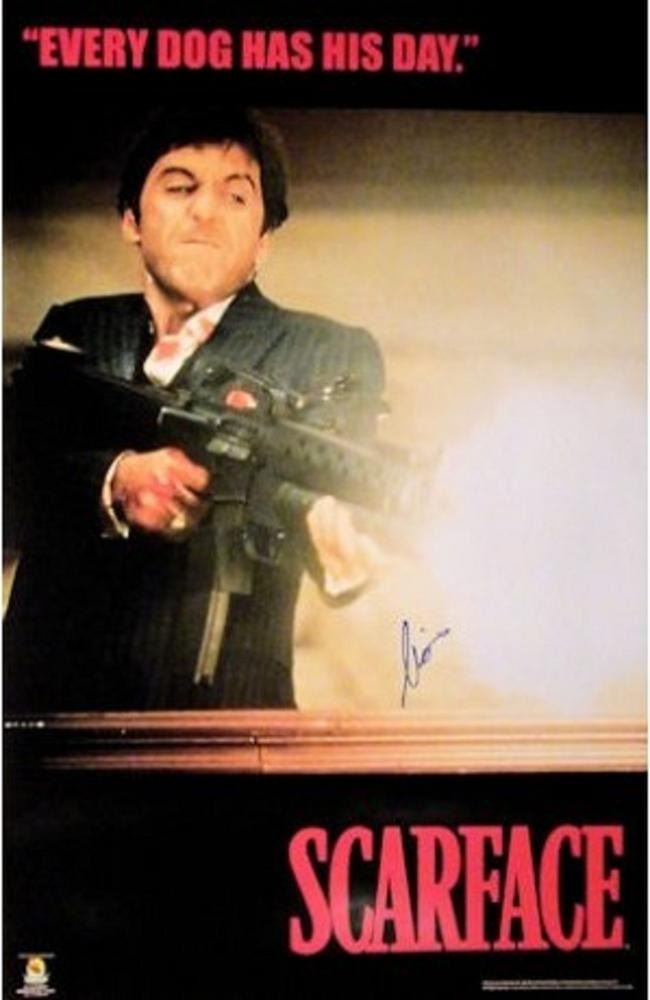 23 in. by 34 in. "Scarface' movie poster autographed by Al Pacino.
