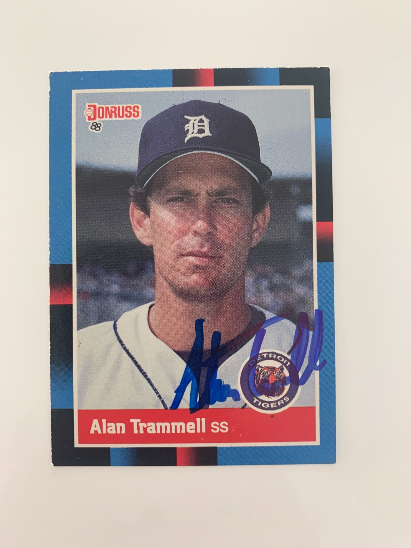 Alan Trammell signed baseball card. Donruss 1988. 2x3 inches