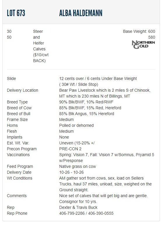 Delivery Location: Bear Paw Livestock which is 2 miles S of Chinook, MT