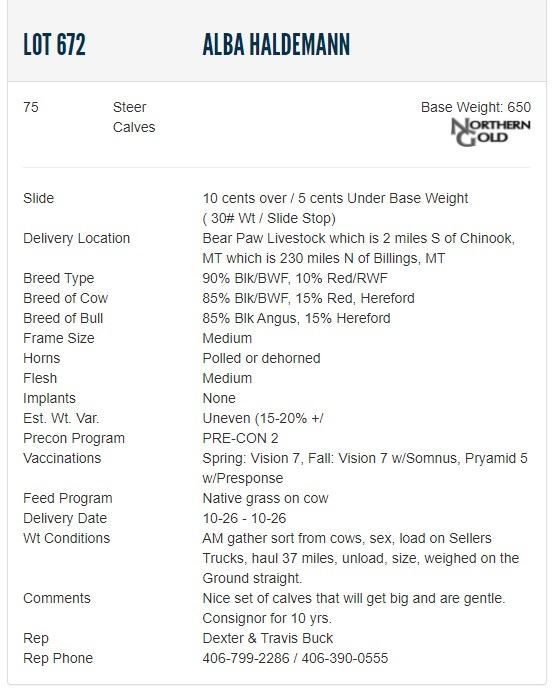 Alba Haldemann - 75 Steers; Base Weight: 650
