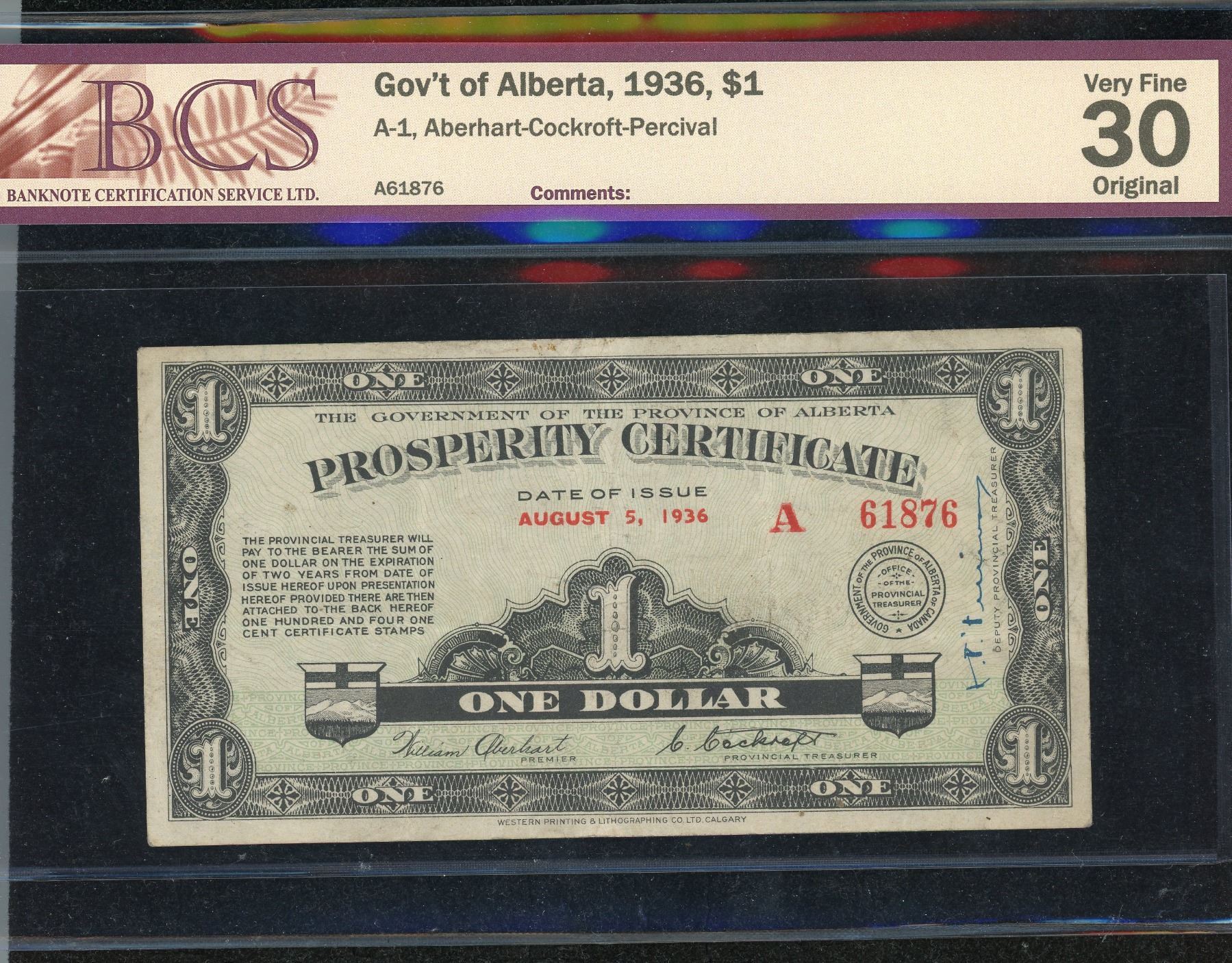 A-1, Aberhart-Cockroft-Pervival, BCS VF-30. S/N: A61876