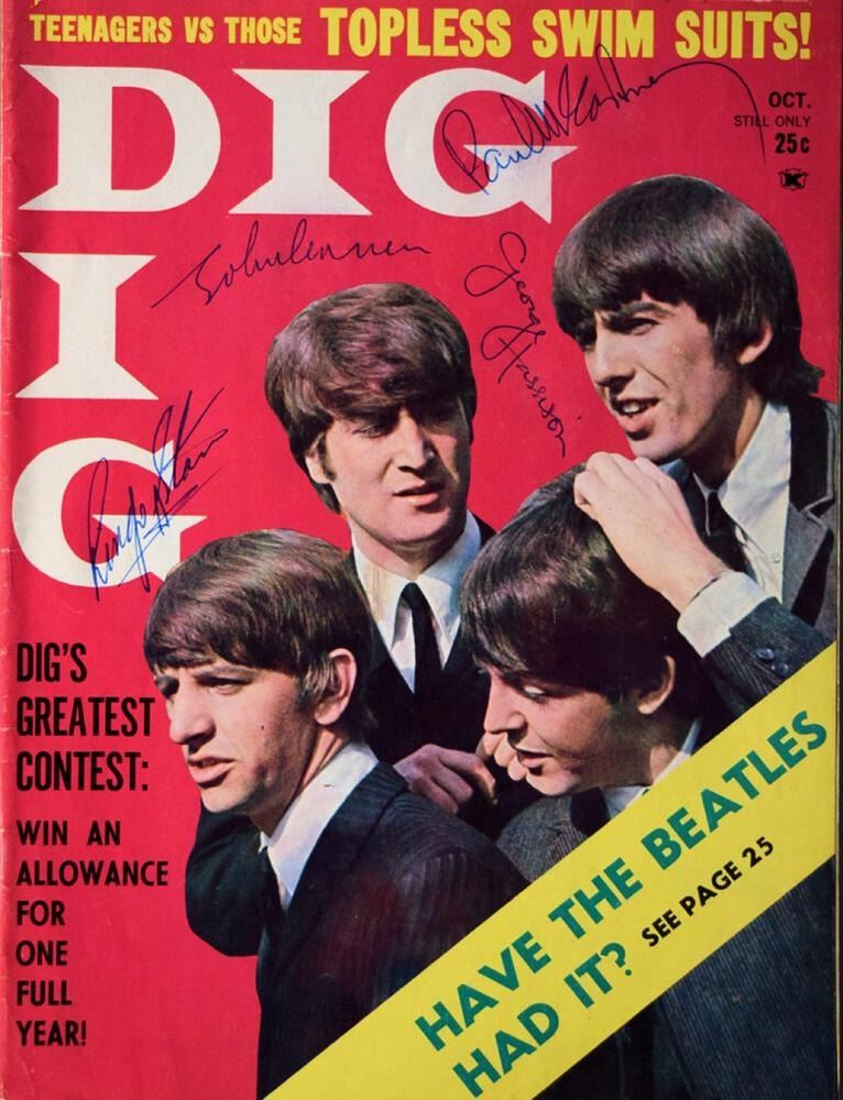 Dig Magazine from October 1964 which includes The Beatles. Signed: Paul McCartney, George Harrison, John Lennon & Ringo Starr.