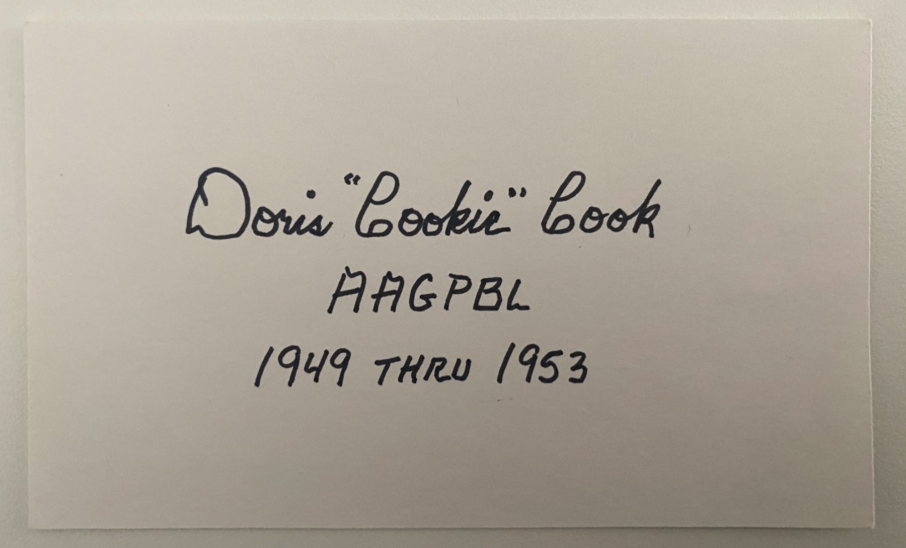 All American Baseball Player Doris Cook signed note. 3x5inches
