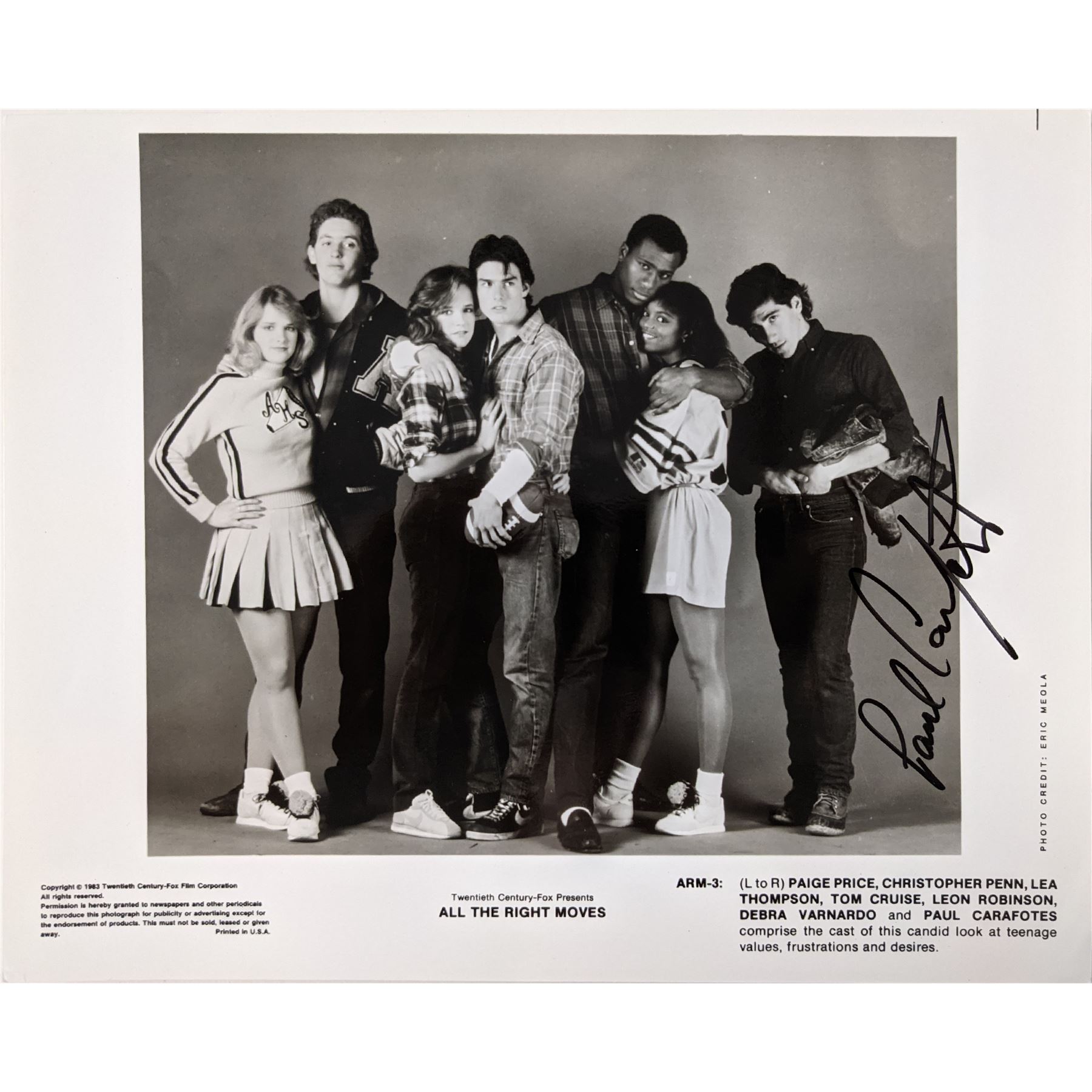 All the Right Moves movie photo autographed by Paul Carafotes. 8x10 inches.