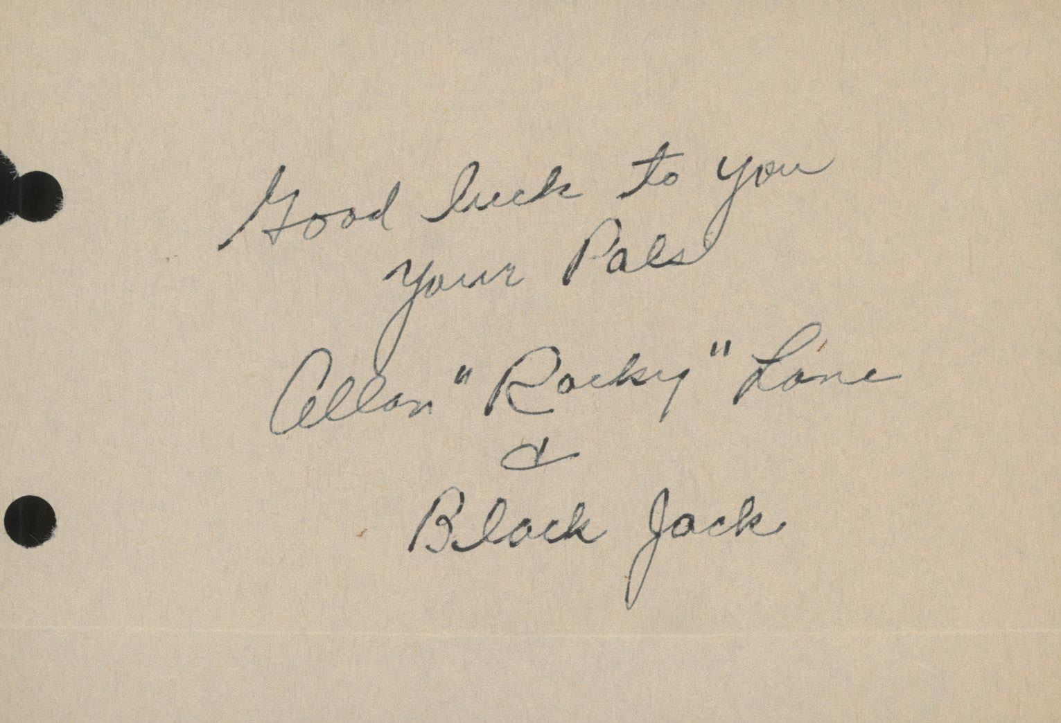 Allan "Rocky" Lane signed note