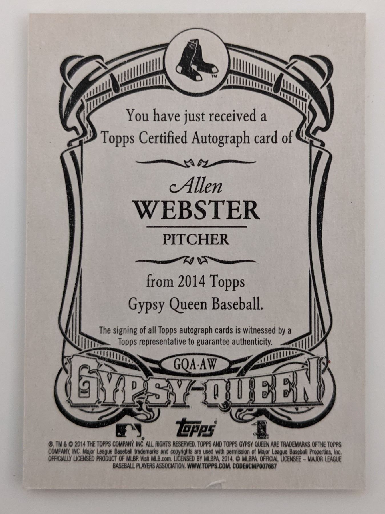 Allen Webster Signed Baseball Trading Card - Topps Gypsy Queen 2014