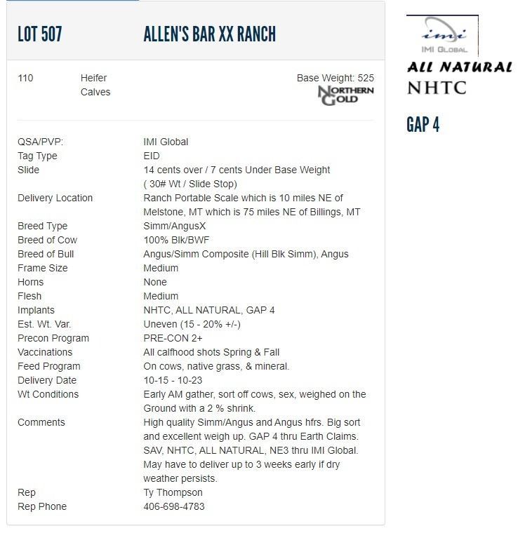 Allen's Bar XX Ranch - 110 Heifers; Base Weight: 525