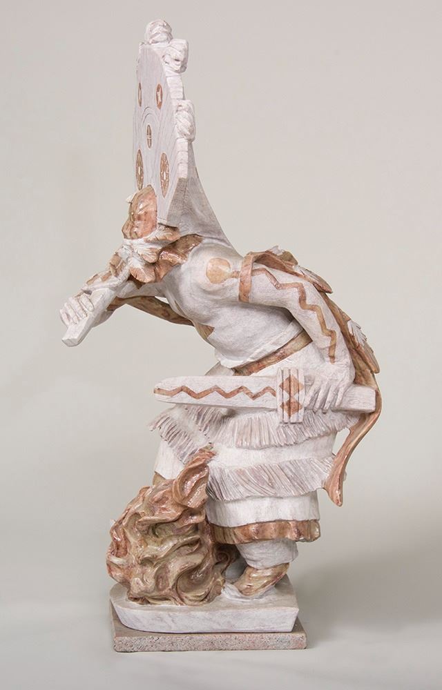Artist: Alvin Marshall; Title: Apache Ghan Dancer; Medium: Alabaster; Dimensions: 32 inches overall height; Signed: Signed; Framed/Base: 32 x 13 x 17 inches - 140 lbs.