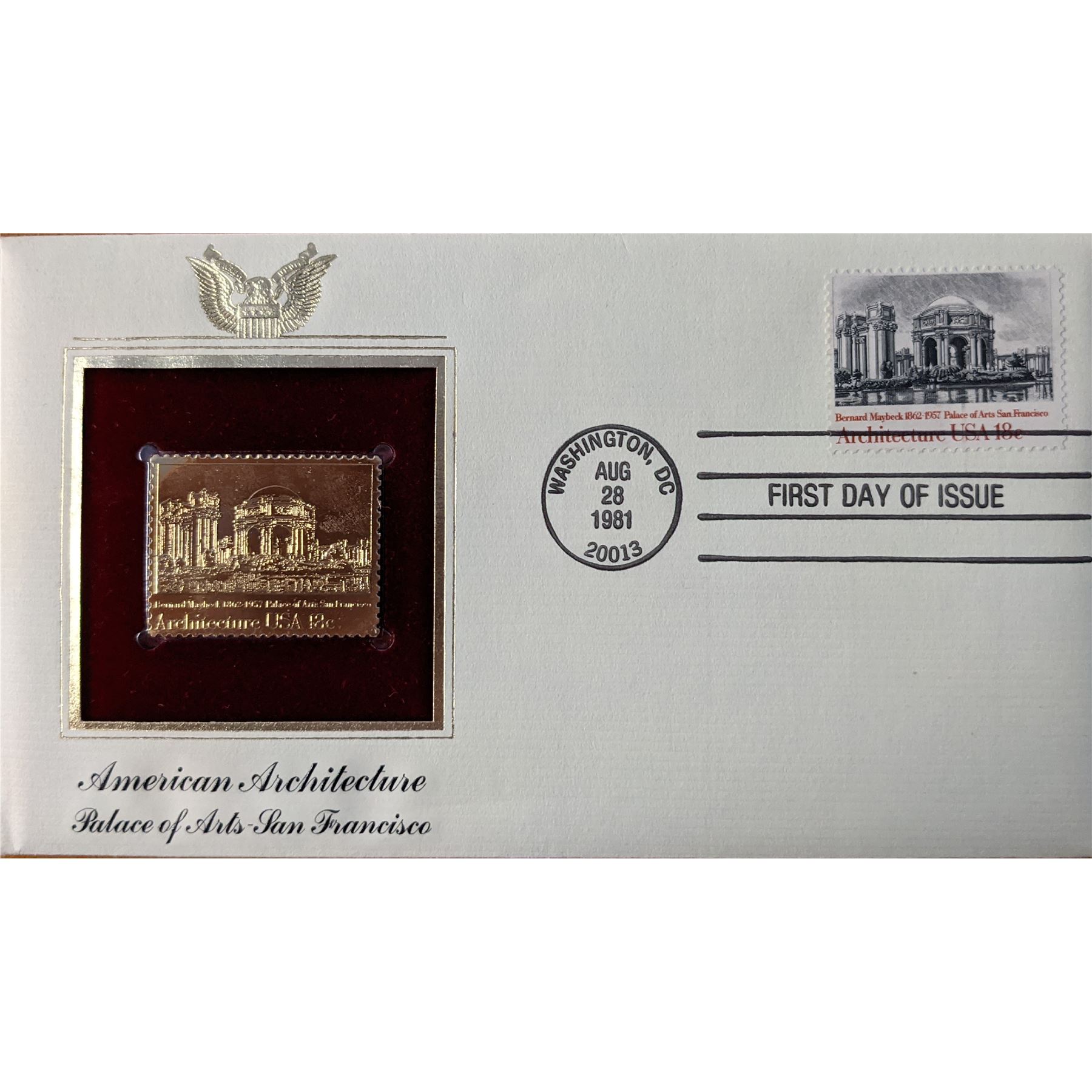 American Architecture Palace of Arts, San Francisco Gold Stamp Replica First Day Cover Washington DC AUG 28 1981