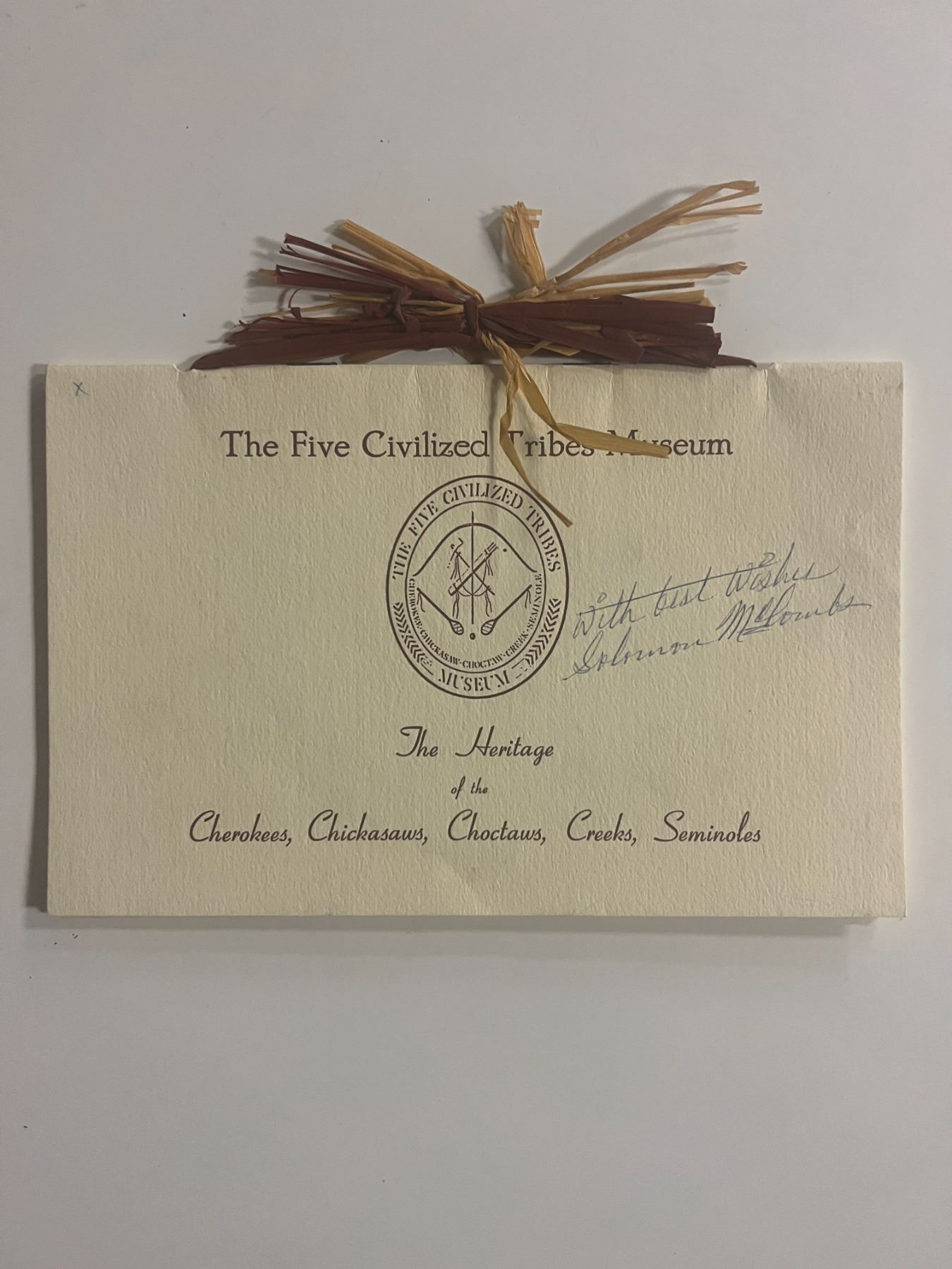 The Five Civilized Tribes Museum American Artist Solomon McCombs Signed Card. 9x6 inches
