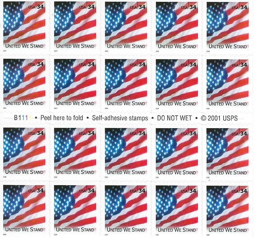 United We Stand American Flag stamp sheet 20x34 cent stamps