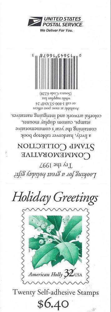 1997 American Holly 20 x 32 Cent US Stamps, #3177