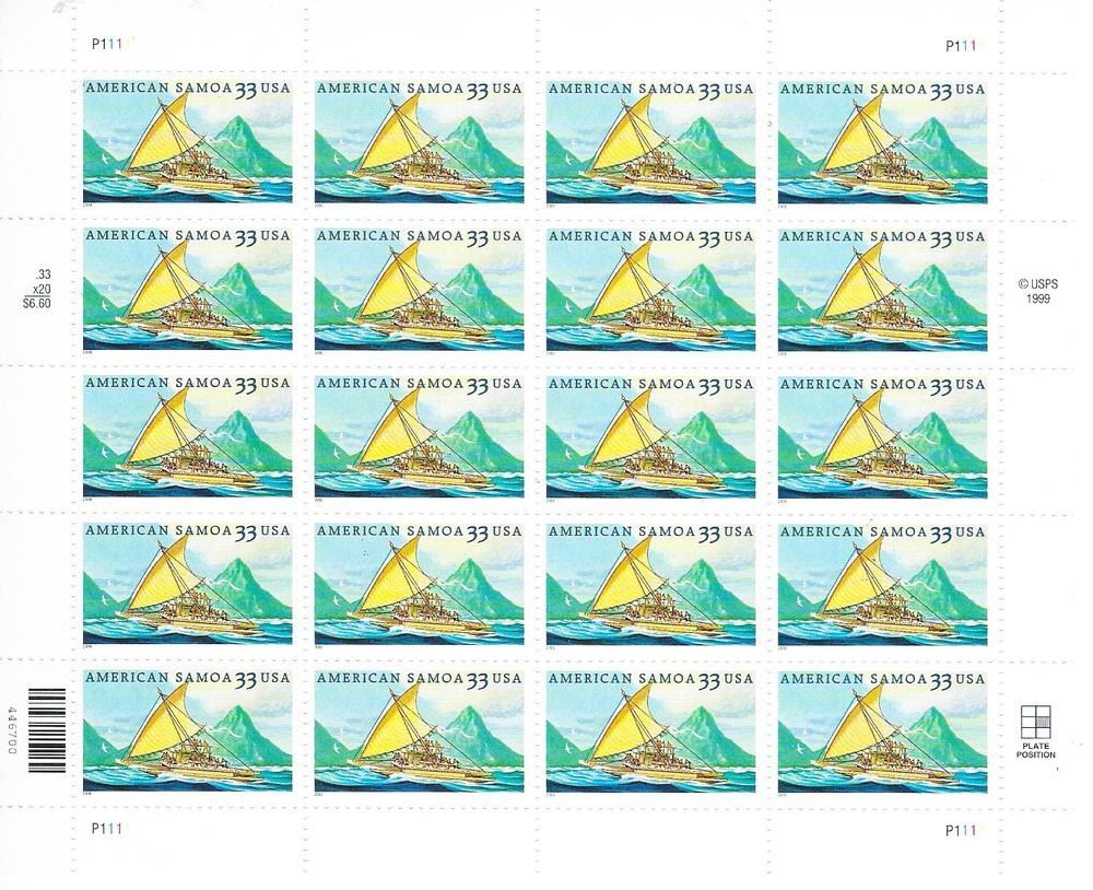 American Samoa Stamp Sheet - USA - 33 Cents x 20 Stamps - 1999 USPS