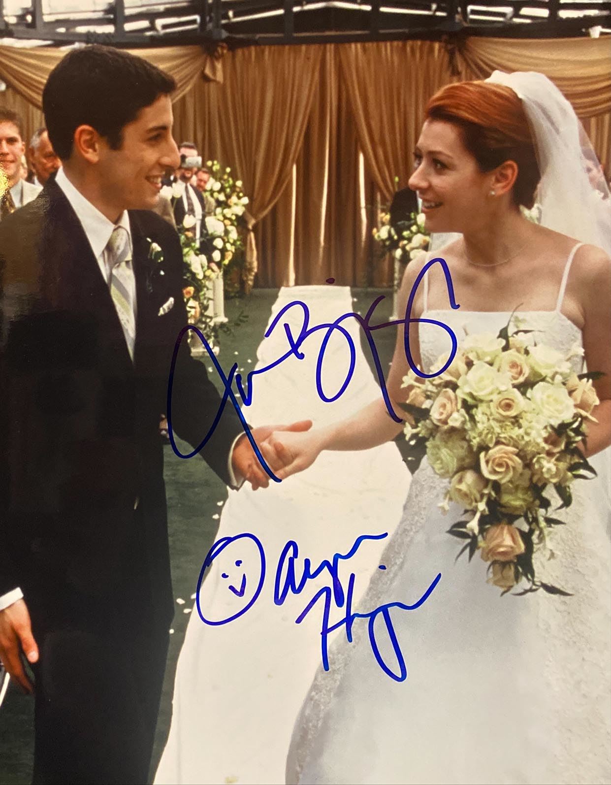 American Wedding signed movie photo autographed by Jason Biggs and Alyson Hannigan. 8x10 inches