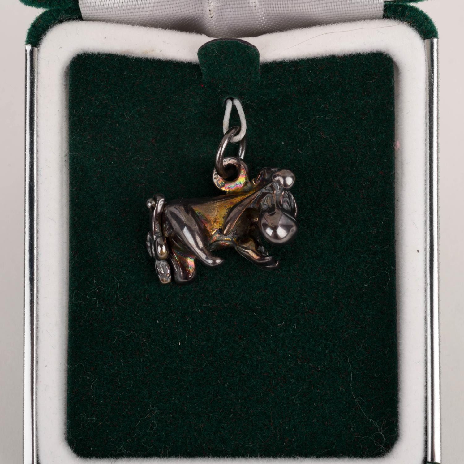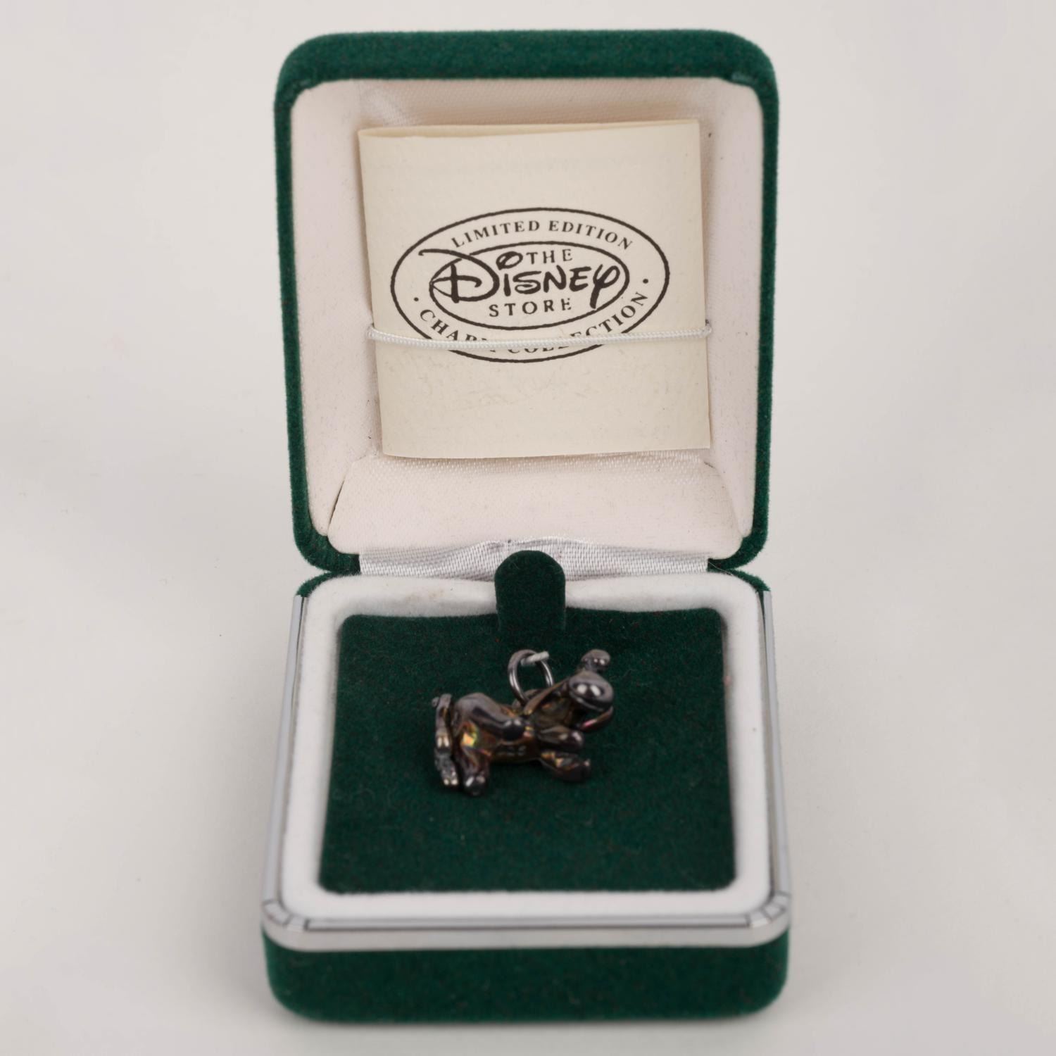 (Disney, 1995) A charm of Eeyore from "The Many Adventures of Winnie the Pooh," part of The Disney Store Limited Edition Charm Collection. Measuring 0.75" x 0.75", the charm is in good condition with tarnishing from age and comes in the original packaging.