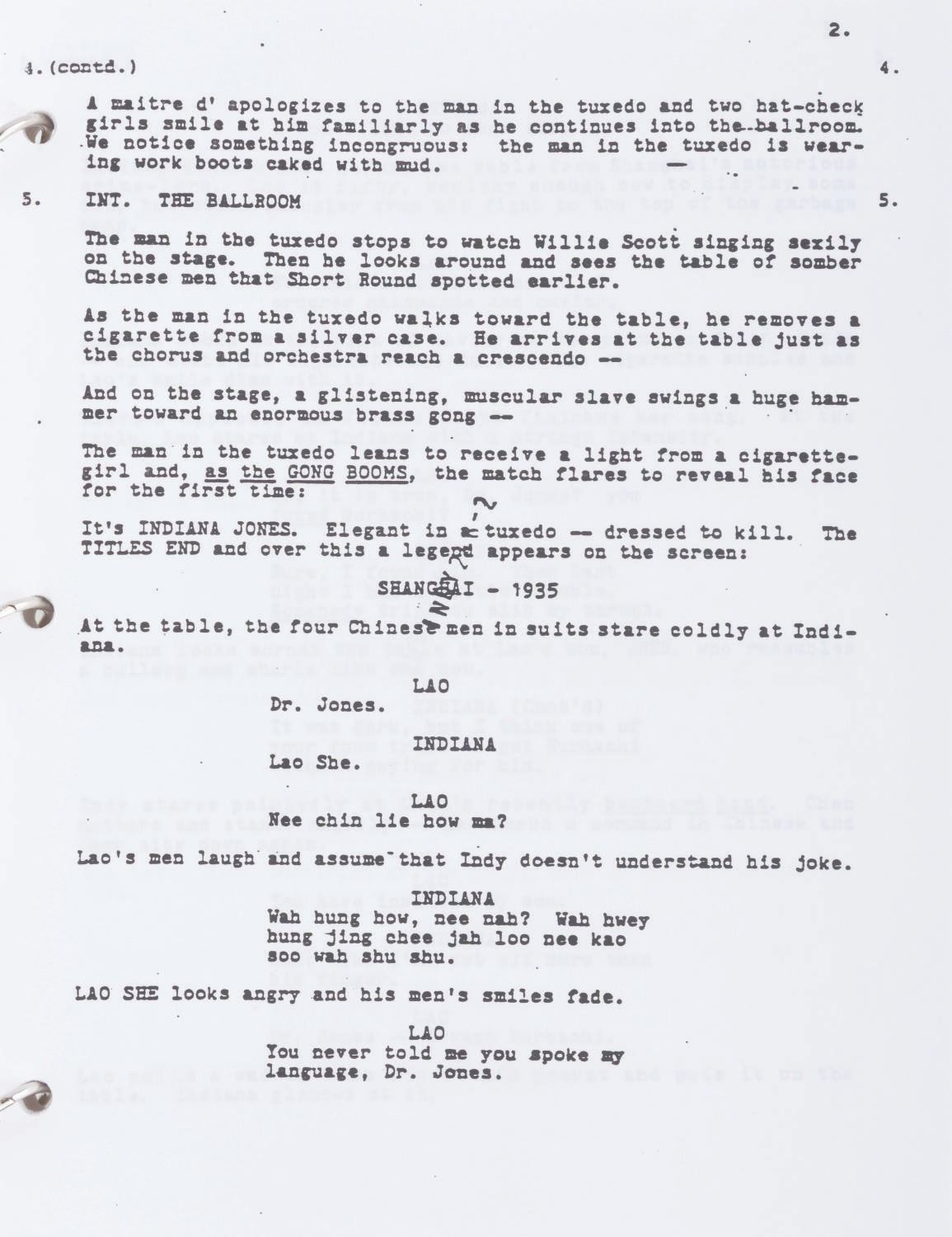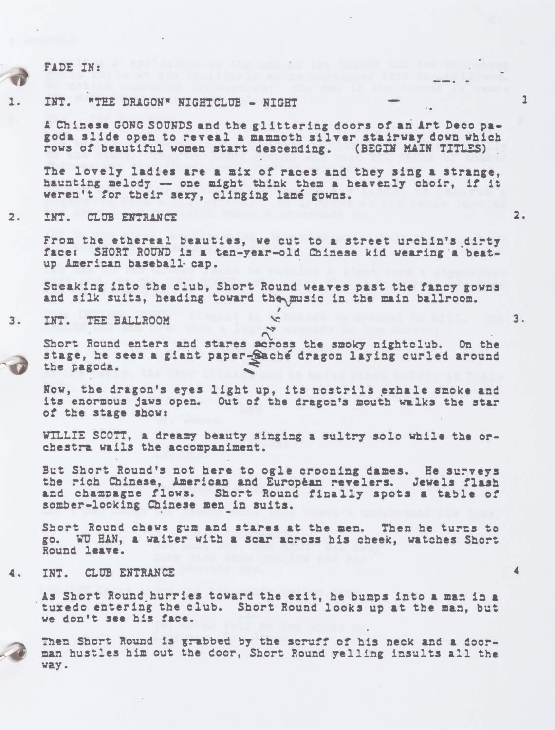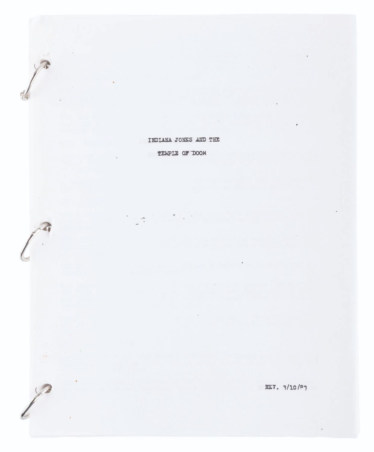 (Paramount, 1983) A revised shooting script for "Indiana Jones and the Temple of Doom,” dated March 10, 1983. This is a post-production photocopy printed for use at Industrial Light & Magic. Measuring 8.5” x 11”,the 128-page script is in very good condition, three-hole punched with light edge wear.