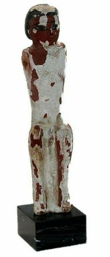 Ancient Egyptian Wood Boatman Figure c.700 BC. Size 7 1/2 inches high + mount. Fine large wood figure of Boatman painted in red over gesso. Ex Harlen Berk USA.