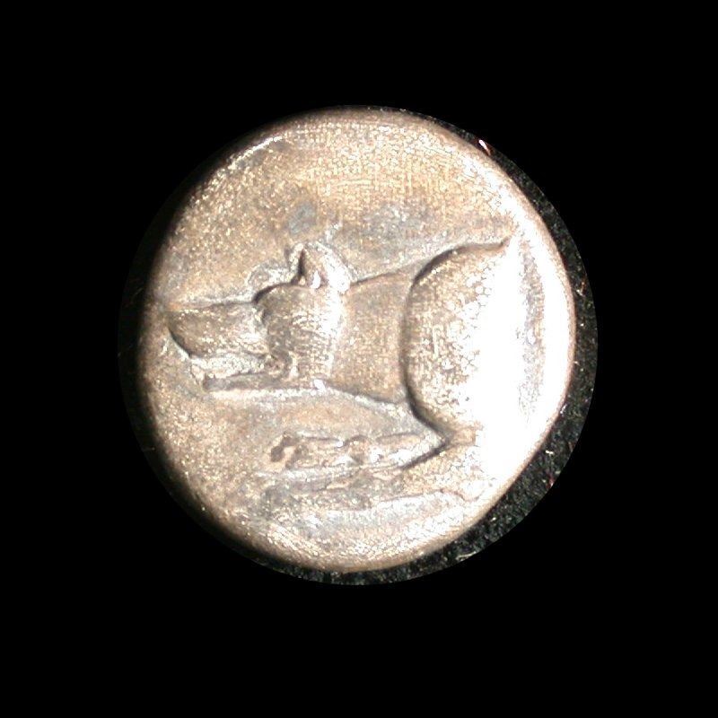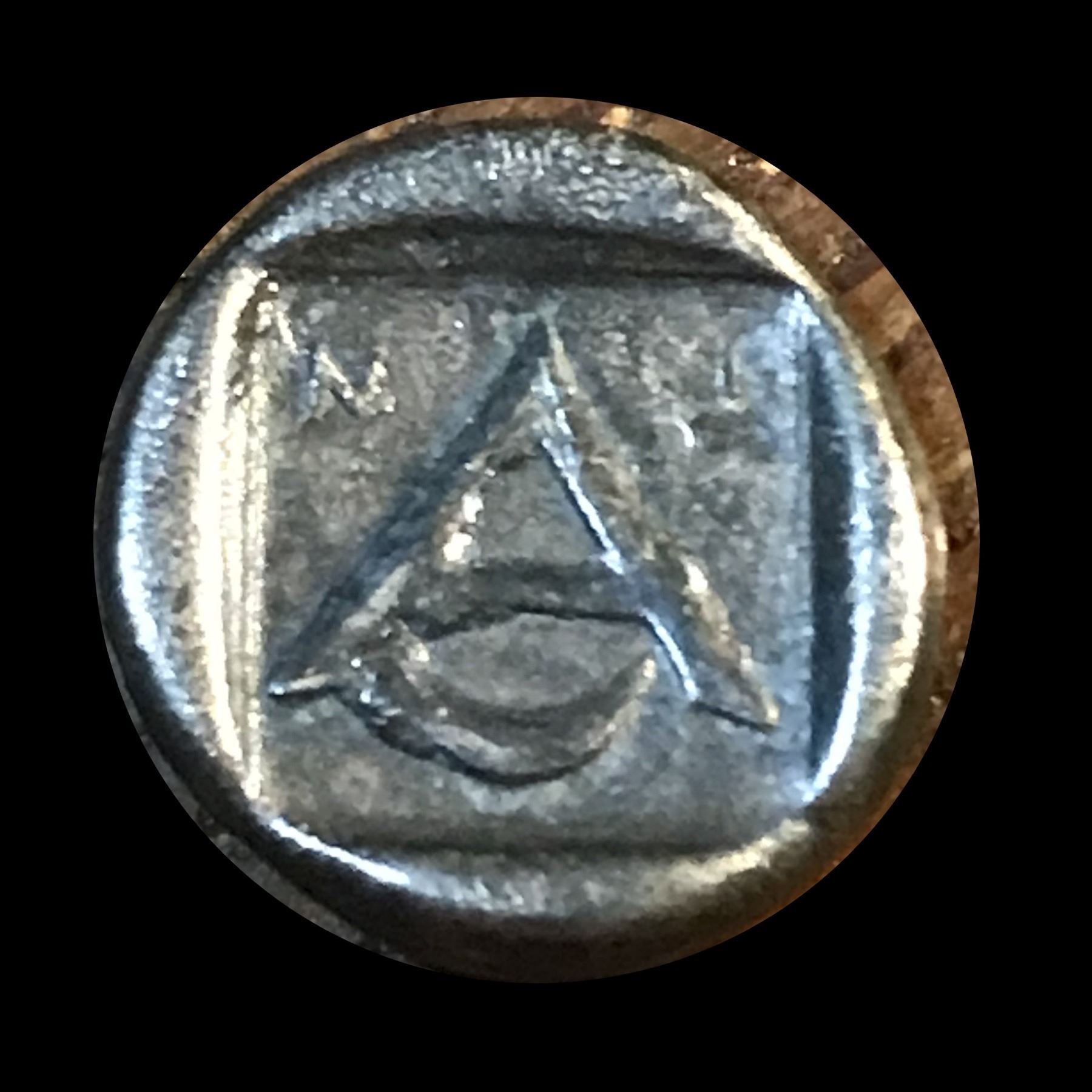 Obverse: Forepart of a crouching wolf left. Reverse: Large 'A' with crescent below, N and I across fields, all within incuse square. Sear(GCV)-2795 variant; about VF, nice toning (14mm, 2.6g).