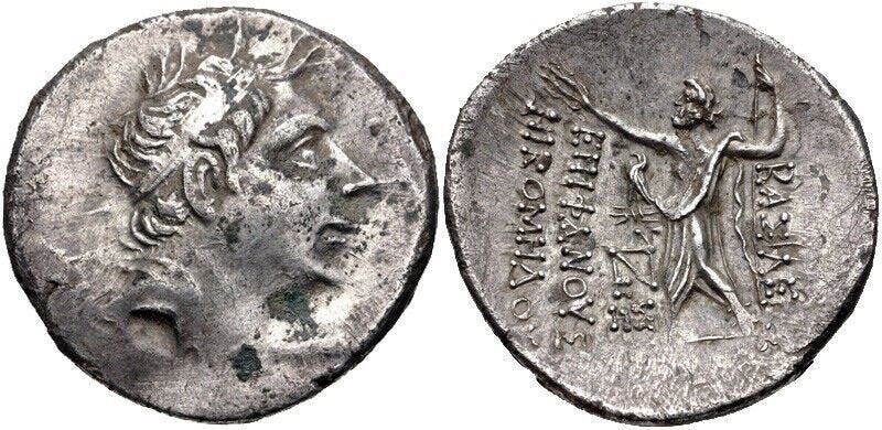 Ancient Greek KINGS of BITHYNIA. Nikomedes II Epiphanes. 149-127 BC. Silver Tetradrachm (32mm, 15.72 g, 12h). Dated 208 BE (90/89 BC). Diademed head right / Zeus Stephanophoros standing left; to inner left, eagle standing left on thunderbolt above monogram above HΣ (date). Callatäy p. 63; RG 40; HGC 7, 646; DCA 445. Toned. VF.