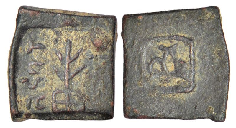 Ancient India: Ancient Agroha (Punjab-Haryana) region - copper coin of 'Agacha Janapada', (c.150-100 BC), not listed in PAIC, 1.01g. Obv: tree-in-railing in centre, Brahmi legend around …napadasa. Rev: three-arched hill with crescent, in a rectangular border.