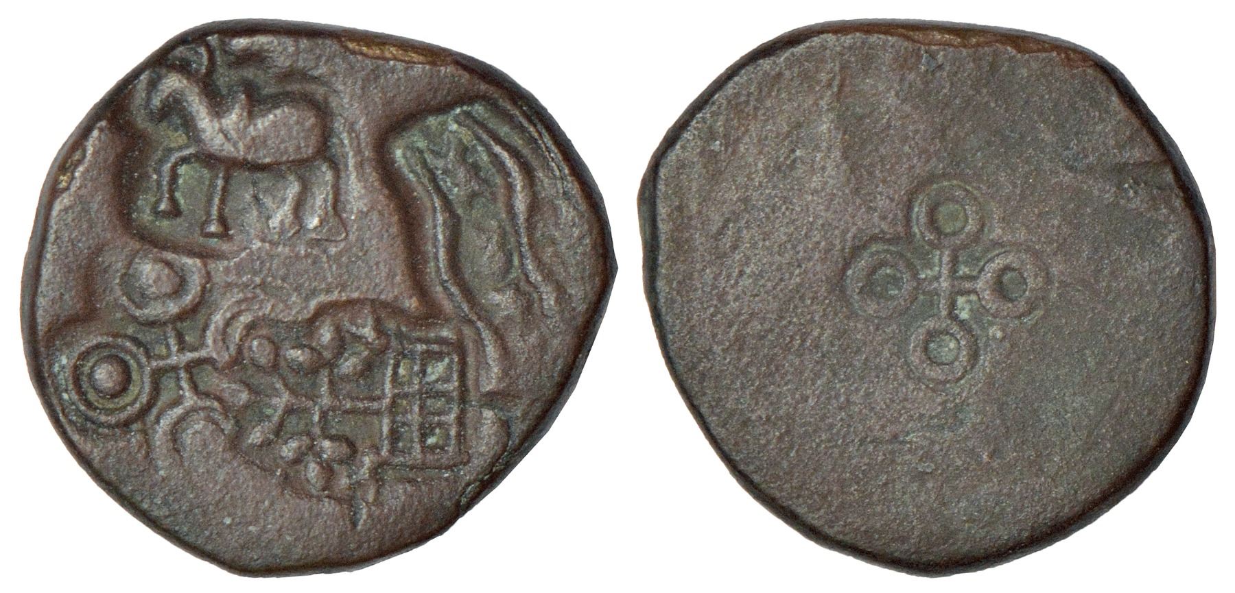 Ancient India: Ancient Malwa - post-Mauryan copper coin of Ujjain area, not listed in PAIC, 4.46g.