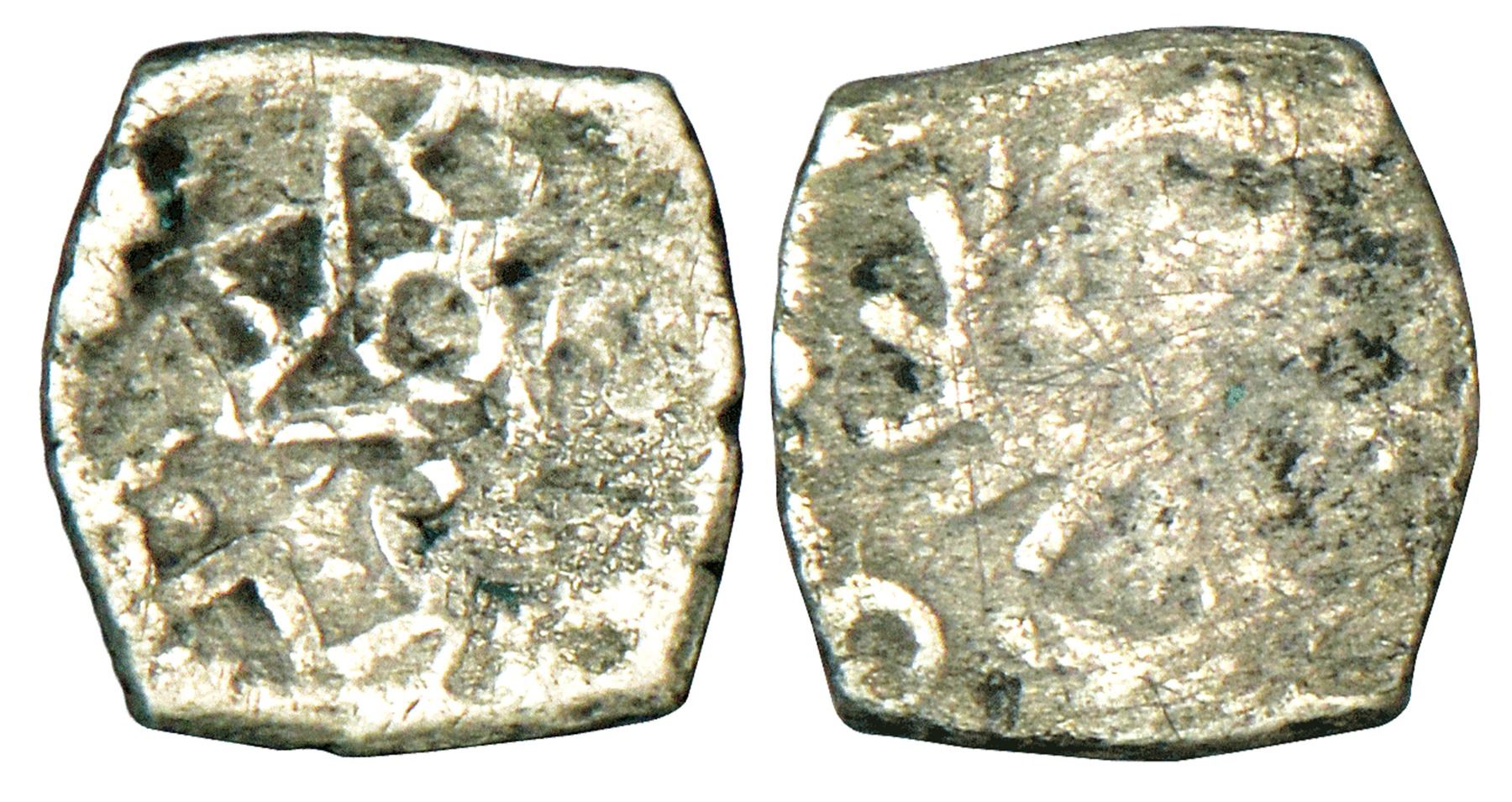 Archaic silver punch-marked coin, Saurashtra region, usually attributed to 'Saurashtra Janpada' (450-300 BC), ¼ karshapana, 0.83g. Obv: Eight pointed star in centre. Rev: Usual traces of undertype, Rajgor series, 18 No 402a.