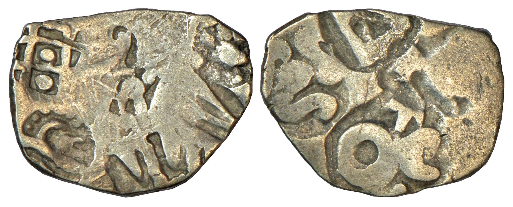 Ancient India: Archaic silver punch-marked coin - light-weight Karshapana, Palia hoard type, 2.68g.