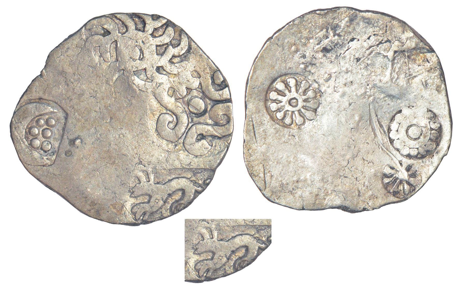 Ancient India: Archaic silver punch-marked coin - middle Ganges valley region, 'Jakhania hoard' type