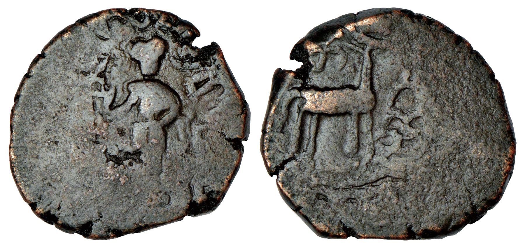 Ancient India: Post-Mauryan tribal republics, Yaudheyas, copper fractional unit, Chitreshwara, 9.85g