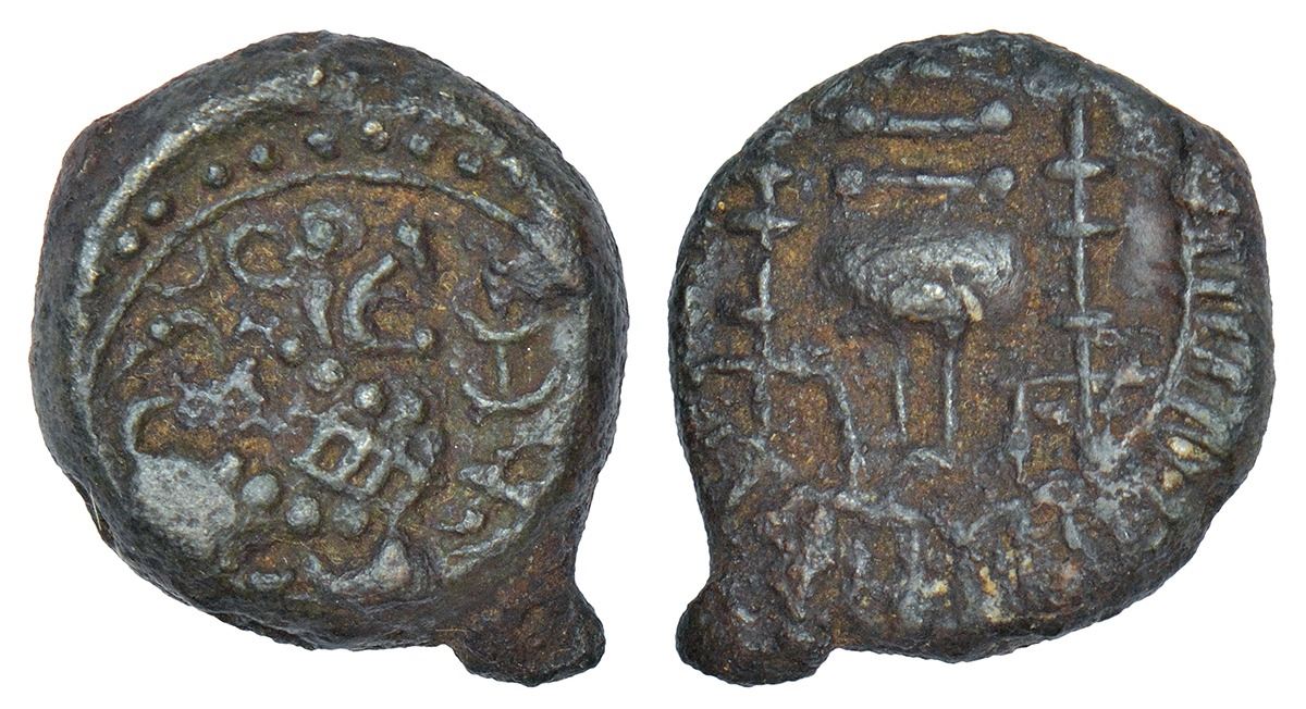 A highly unusual and previously unknown variety of Vishnukundin coinage.