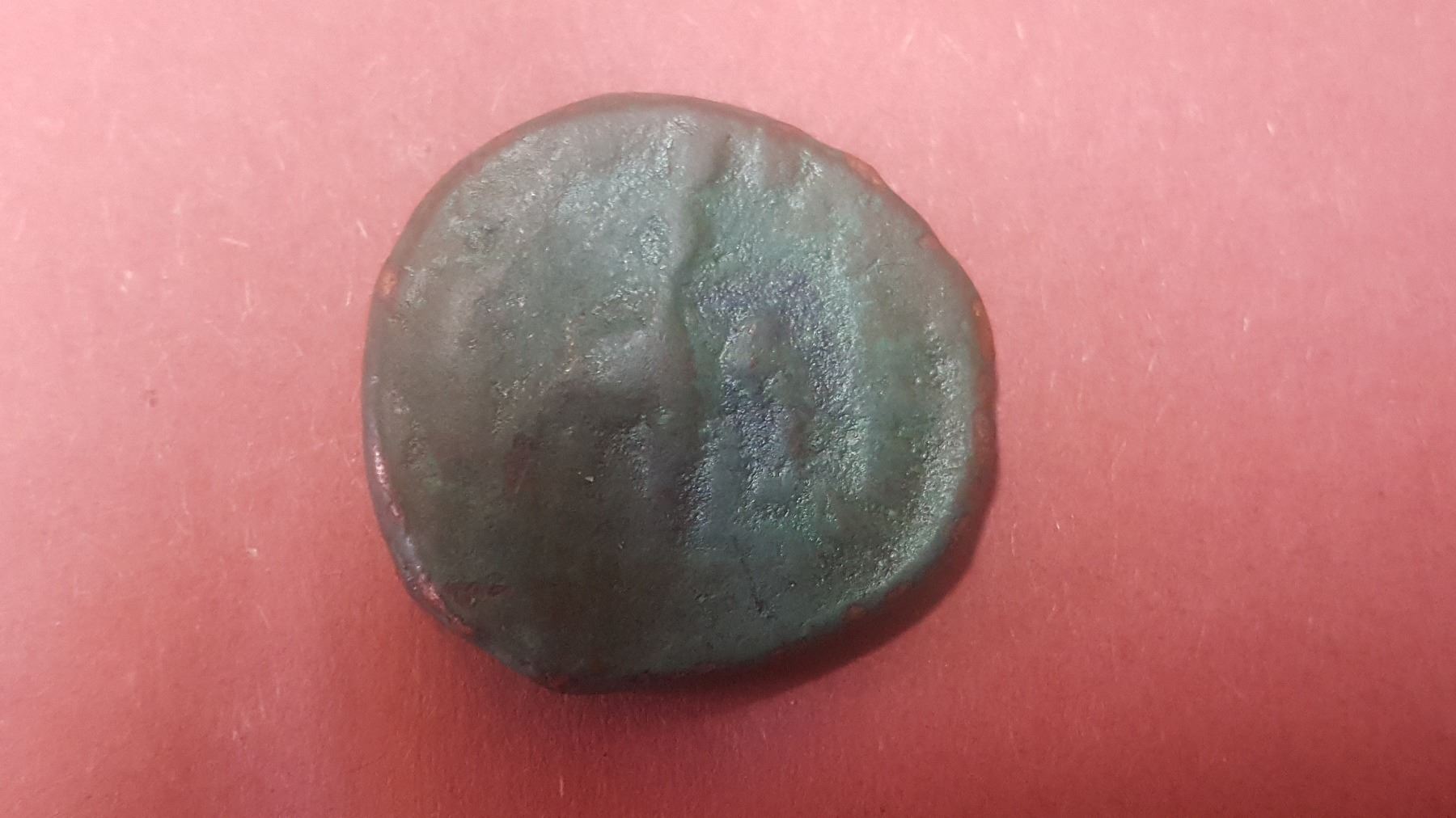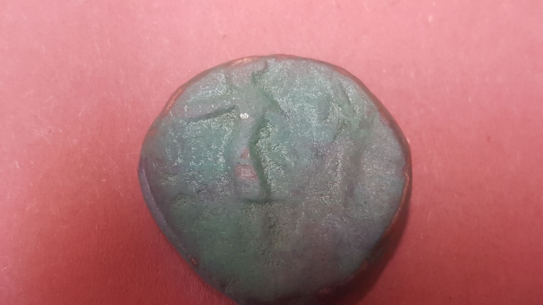 Reverse - Female deity standing figure with head facing left and right arm extended out