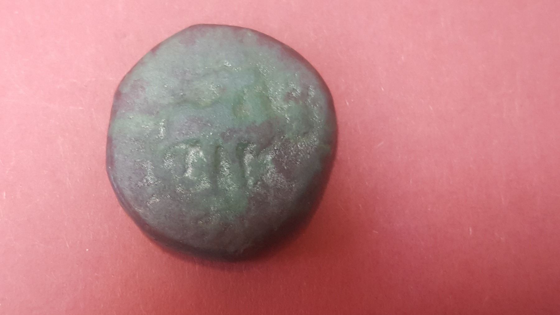 Reverse - Female deity standing figure with head facing left and right arm extended out