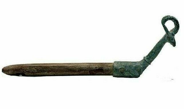 Ancient Luristan Bronze Finial with Stag c.1000 BC. Size 9 1/2 inches length. Fine bronze Finial with Stag with original whetstone. Provevance: Ex Private New York City estate.
