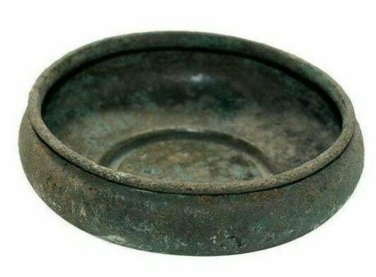 Ancient Near Eastern Luristan Bronze Bowl c.8th century BC. Size 4 1/4 inches diameter x 1 3/8 inches high. Fine Ancient Near Eastern Luristan footed thick Bronze bowl with flared rim. lovely incrsutation surface patina. Provenance: From the Estate of Robert Flourance VA USA.