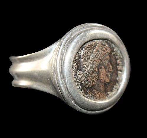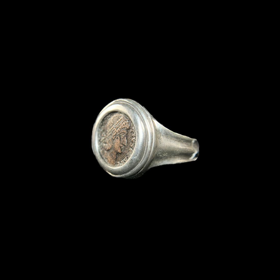 Ancient Roman Constantine Bronze Coin Set in Silver Ring. Ring Size 9 USA .Ancient Roman Bronze coin of Constantine the great 307-337 AD Set in Modern Silver Ring. wearable.